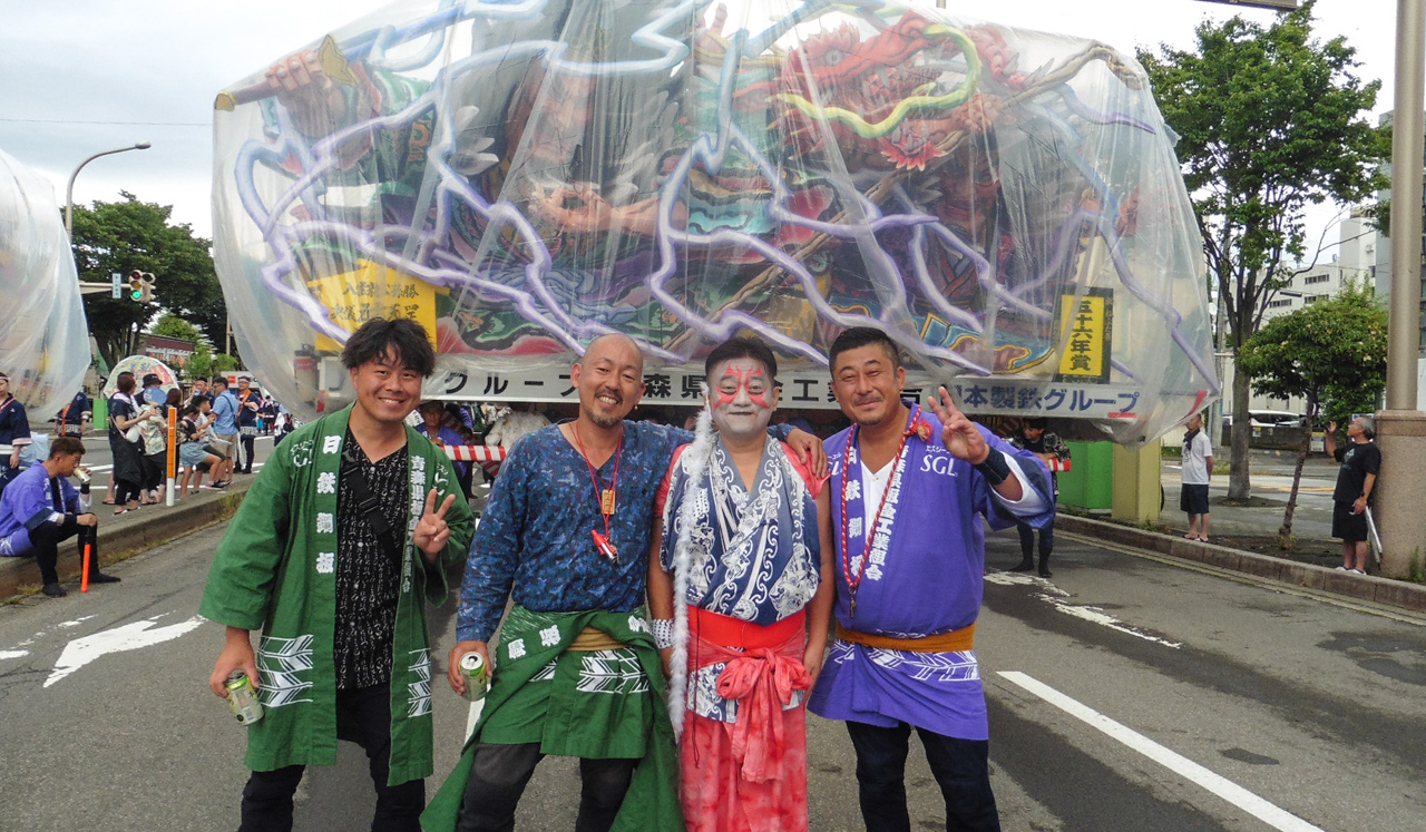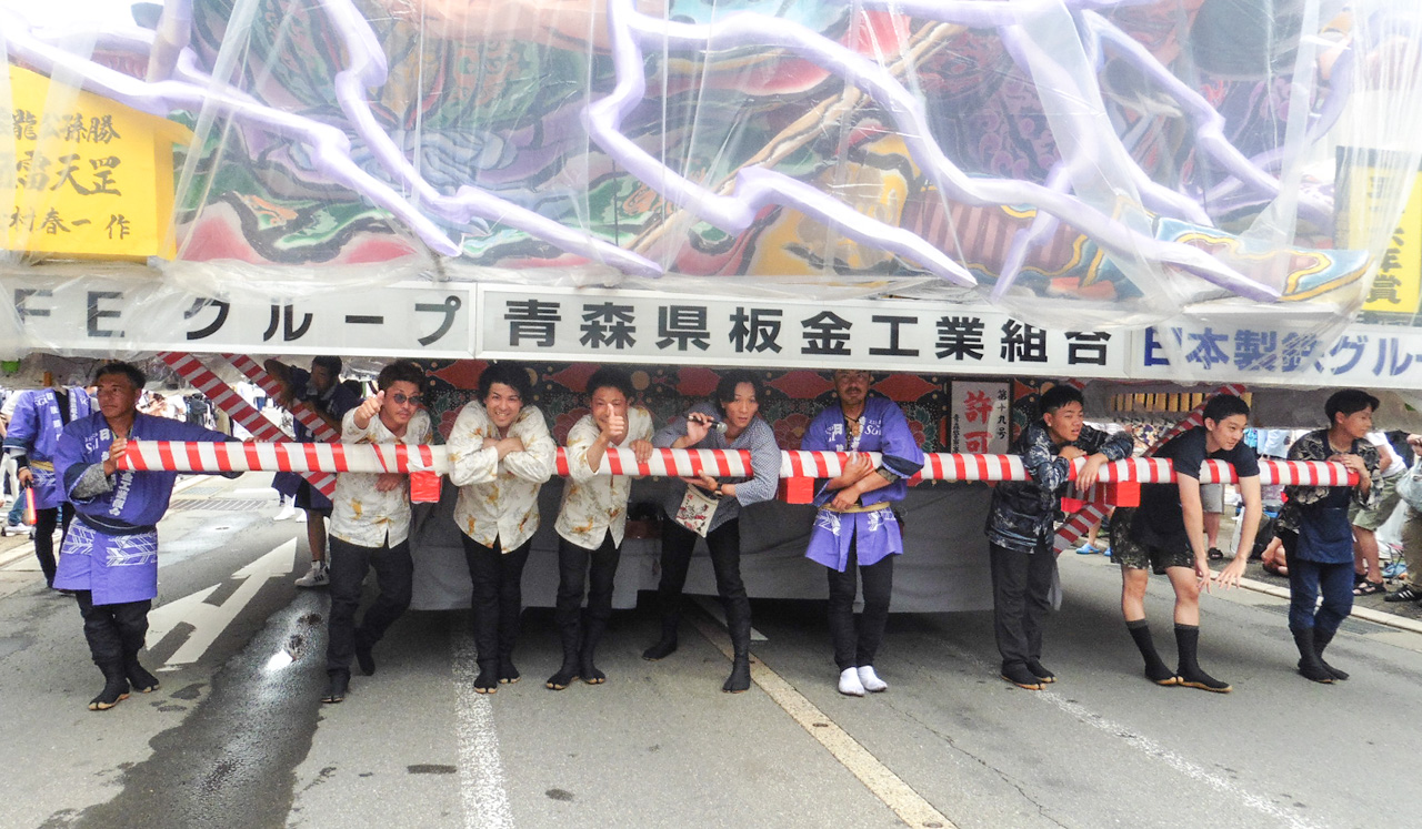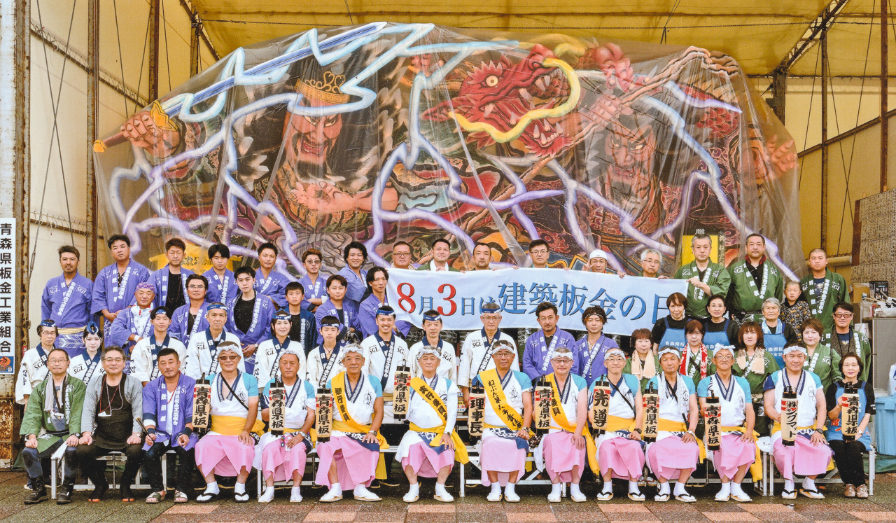 青森県民の「じゃわめぐ」想いを全国にとどろかせる、東北を代表する祭り、青森ねぶた。青森県板金工業組合では、地域協力事業の一環として、永年にわたり、青森ねぶたへの参加に取り組んでおります。